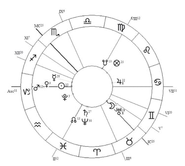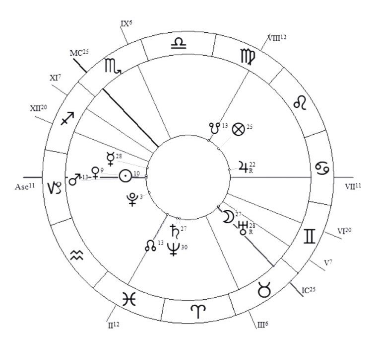 Un kur tad bija pazudušais gredzens? Pēc gandrīz stundas neveiksmīgiem pašrocīgiem meklējumiem un gandrīz minūtes pēc jautājuma kartes uzmetiena gredzens tika atrasts tieši tur, kur norādīja karte – guļošs uz grīdas blakus kvērenta krēslam. Brīnišķīga Jaungada dāvana no pareģošanas mākslas. Jo kas gan var būt labāks horārajam astrologam par jautājuma karti, kuras atbilde uzreiz apstiprinās? Tikai vēl viens horārais jautājums…